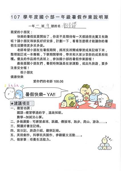 暑假作業說明單