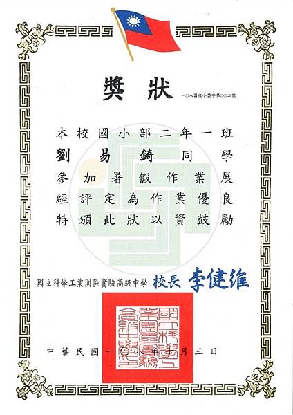 週會上台領獎狀,也在運動會期間展覽給一年級的新生家長參考!