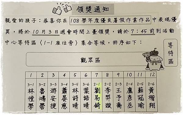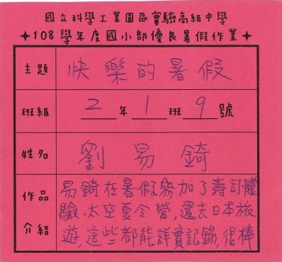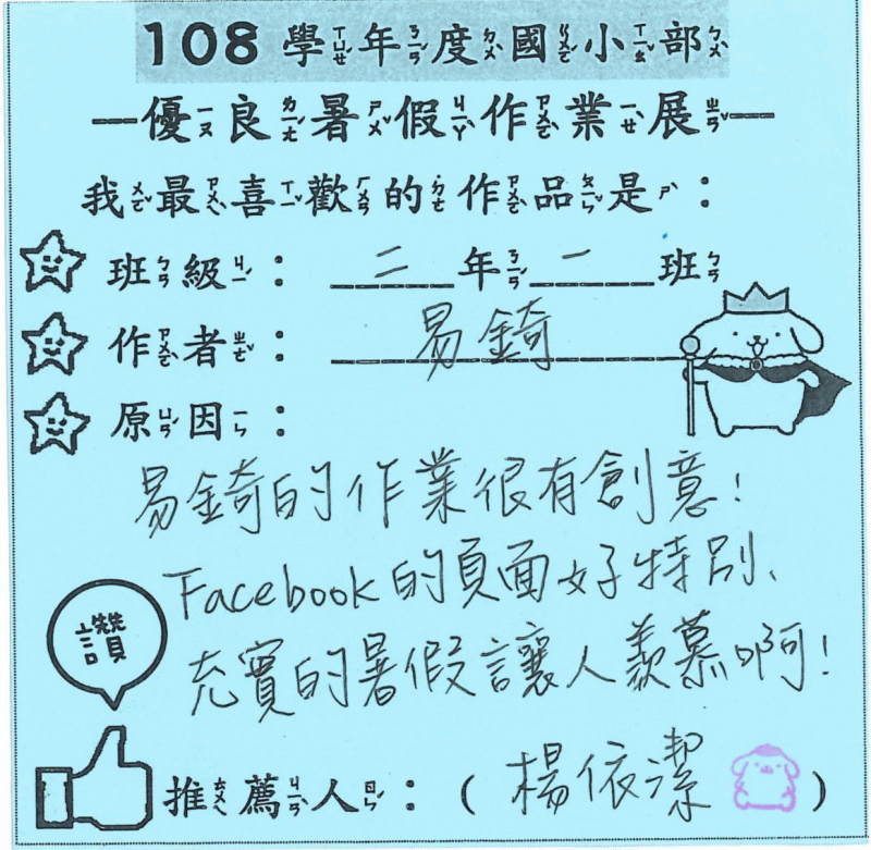 謝謝大家的承讓,嘟寶代表了班上去參加暑假作業展