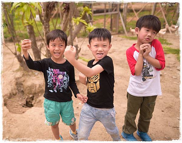 沒想到嘟寶說他有撿到一顆,因為雞看到一群小朋友衝過去,都嚇得跑走了 哈哈哈